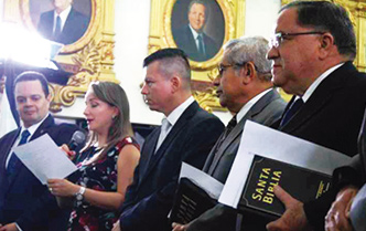 Un grupo de líderes evangélicos de distintas denominaciones y funcionarios de gobiernos se congregaron este jueves en el Salón de Expresidentes de la Asamblea Legislativa para celebrar el Día de la Biblia en Costa Rica. En el país, la celebración del Día de la Biblia es un evento oficial que fue aprobada por ley el año 2000.