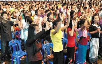 Más de 13.000 jóvenes de Myanmar se reunieron en un histórico evento de jóvenes, organizado por la Asociación Cristiana Evangélica de Myanmar y Teen Mania. La multitud se reunió en el Estadio Insein Football al aire libre a pesar de la lluvia torrencial que caía en el momento.