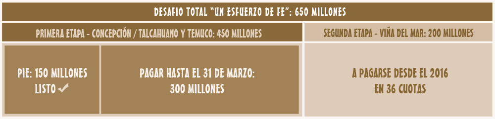 Lo primero es pagar por Concepción - Talcahuano y Temuco, y para ello deberemos cancelar 450 millones al 31 de marzo de 2016. Un tiempo muy corto para un esfuerzo muy grande.
