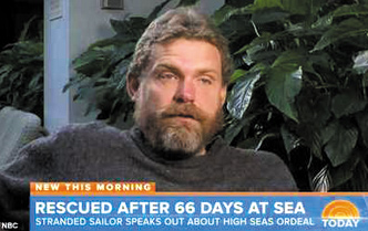 "Durante un largo tiempo estuve muy sediento y estaba casi sin agua, y cada día oraba 'Por favor Señor, manda algo de lluvia, algo de agua'", relató el navegante tras su rescate, y cuando ya casi no tenía agua sus plegarias fueron respondidas y pudo recolectar el preciado líquido.